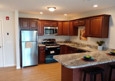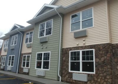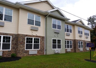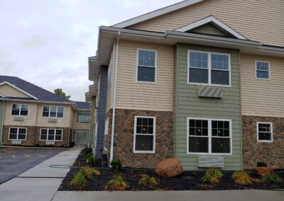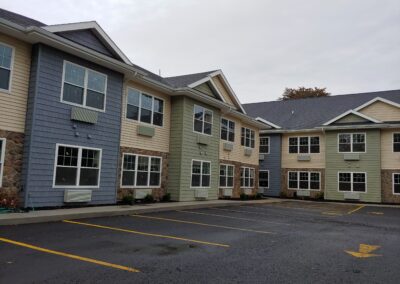 This 51 unit senior housing project is located in the center of the Village of Walworth, NY. Design goals were to make the complex human scale by breaking up the massing into individual sized elevations. The building is strategically placed on the site for maximum use of the property and to fit into its urban context.